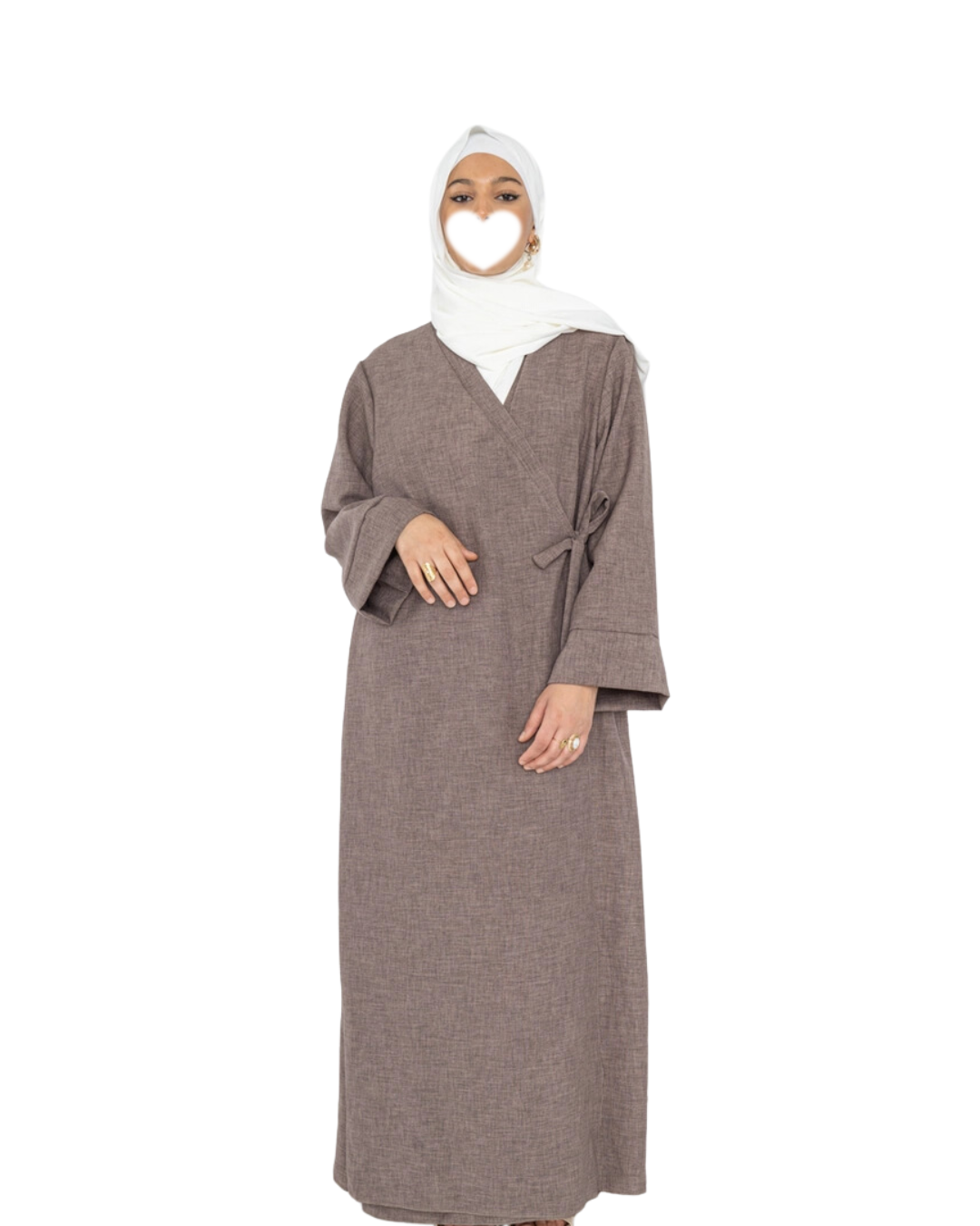 Mocha Kimono maxi-dress with a side bow, wide long sleeves. Available in one standard size (36-48).